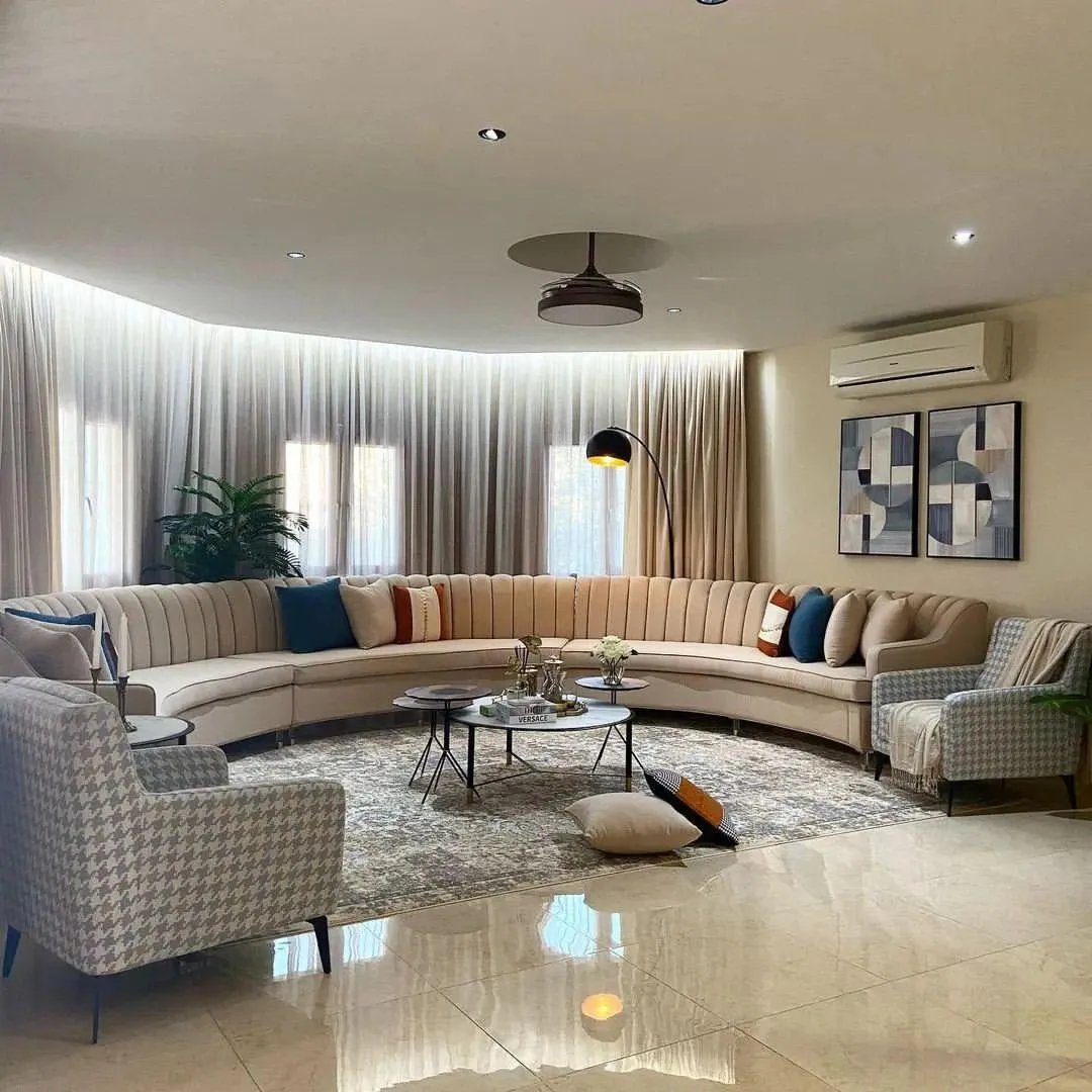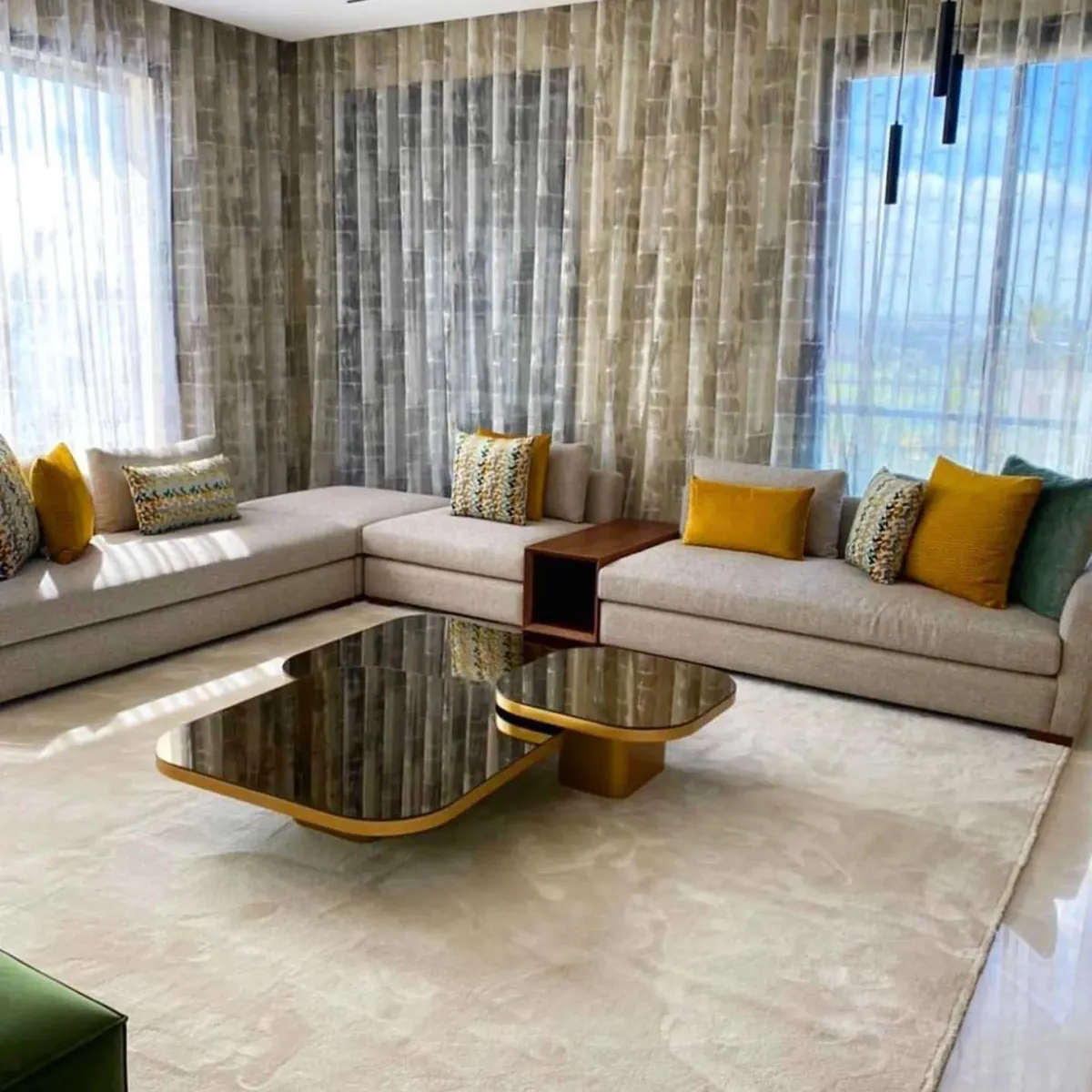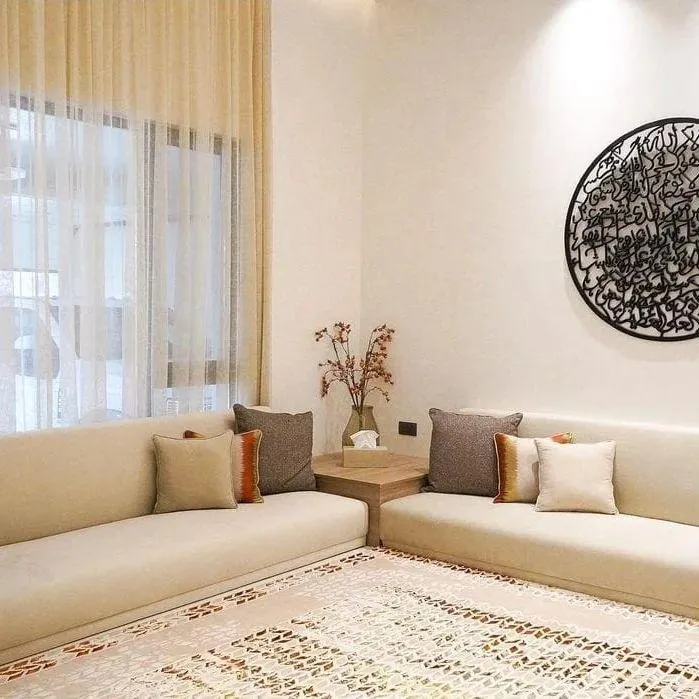 تفصيل الجلسات الأرضية بأقمشة فاخرة وتصاميم مريحة، لتمنحك تجربة استرخاء استثنائية وأجواءً دافئة في منزلك
